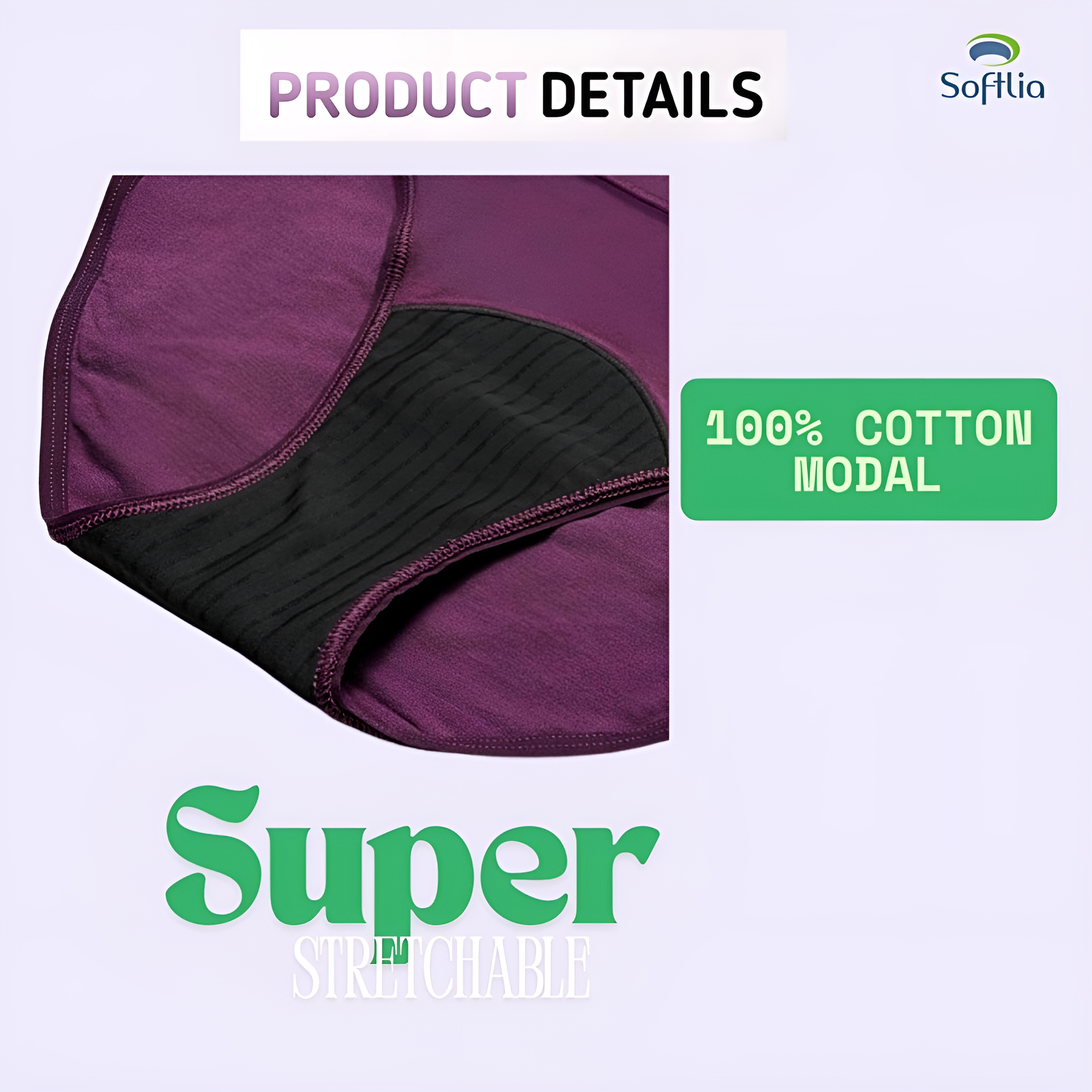 Stay protected during your periods with Softlia Period Panty. Made with soft cotton and multi-layer absorbent protection, it's leak-proof, rash-free, and reusable. Perfect for daily wear, travel, school, or night-time comfort. Eco-friendly, washable, and designed for worry-free flow days.